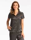 Turn up the drama in our ultra-luxe satin pajama set from PrettySecrets. The silky button-front top and draw string pants add a little extravagance for everyday, and every night. The short sleeve top includes: Button front; Notch collar with contrast piping; Chest pocket with contrast piping; Contrast placket ; Fabric buttons. The Pajama includes: Easy fit; Light weight; Silky-soft; Full-length bottom with drawstring elastic waist; Imported polyester/satin