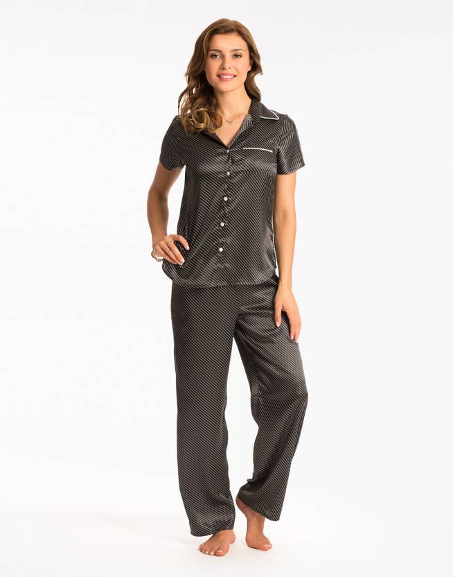 PRETTYSECRETS Women Top & Pyjama Set Black Striped