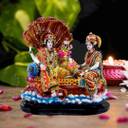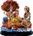 PRG Exquisite Statue of Lord Vishnu with Goddess Lakshmi Reclining on Shesh Naag Decorative Showpiece - 26 cm (Resin, Multicolor)