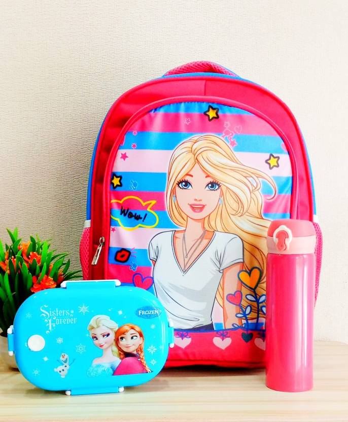 Priceless Deals Small 16 L Backpack Kids' 3D Design School Bags with Lunch Box & Water Bottle| Girl's School Set (Pink)