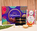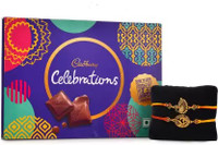 PRIDE STORE Sweet Cadbury Celebrations Pack with Peacock-OM Rakhis, Roli-Chawal & Rakhi Card Paper Gift Box (Multicolor)
