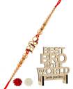 This Rakshabandhan show your immense love and care to your beloved ones with Designer Bro Rakhi included with Best Bro In The World Showpiece & a Heartfelt Quoted Greeting Card.