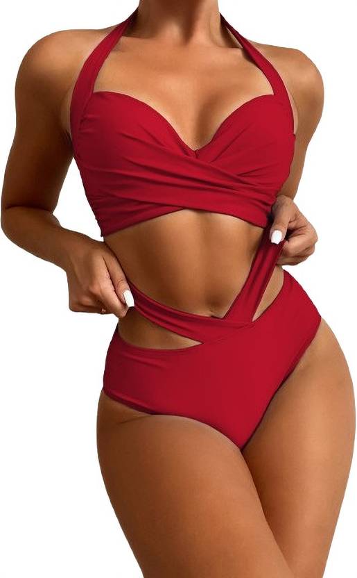 Women’s Solid Wrap Bikini Set – Stylish High Waist Two-Piece Swimsuit