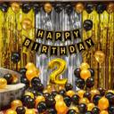36 Pcs Combo 2nd Birthday Party Decorations kit for Boys Gold & Black
