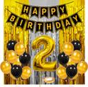 Prihit 36 Pcs Combo 2nd Birthday Party Decorations kit for Boys Gold & Black (Set of 36)