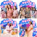 1pc baby shower golden foil banner, 1pc pink foil curtain, 1pc blue foil curtain, 25pcs blue metallic, 25pcs pink metallic, 2pcs blue star foil, 2pcs pink star foil, 1pc glue dots and 1pc arch.