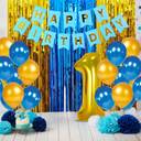 Birthday Decoration kit for 1st Birthday Boys- 36Pcs with Foil Curtain