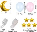1 pc moon foil balloon, 30 pcs pink 30 pcs blue latex balloon, 5 pcs star foil balloon, 1 pc glue dot, 1 pc balloon arch