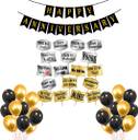18 Pieces Photo Booth Props , 1 Happy anniversary banner , 25 pieces black and golden balloon.