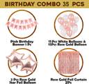 Prihit Solid Happy Birthday Pink Banner Balloons & Star With Metallic balloons Decoration kit Balloon (Pink, White, Pack of 35)