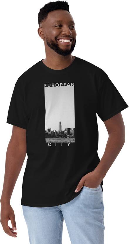 Men Printed Round Neck Pure Cotton Black T-Shirt