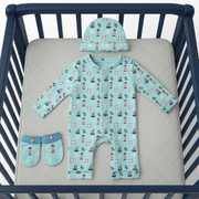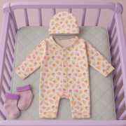 Romper Value Set for Baby comes in Pack of 3 - Romper, Cap & Socks. This is perfect for your baby with all products in matching colors. Also a perfect set for gift. Made of pure cotton, it gives a soft feel. Cute designs specially for baby. The romper is easy to wear because of front opening and use of pop up buttons.