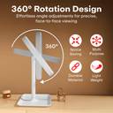 This adjustable, lightweight tabletop mirror in a clean white finish offers a clear reflection without LED lights. Its movable design allows for easy angle customization, making it perfect for precise makeup application or grooming. The compact and simple structure provides a versatile and portable solution for any vanity or desk.