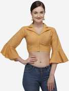 "STYLE : Blouse , COLOUR : As Per Showing in Image , FABRIC : Cotton Silk Neck Type : Collar Neck , SLEEVE : Bell Sleeve , Cup Type : Padded , SiZE : Free Size up to 40 Inch , WORK : Printed , PRODUCT TYPE : Semi-Stitched , SET CONTENTS : 1 Blouse , SEASON : Any , WEIGHT : 200 gm , OCCASION : Wedding, Festival, Casual, Bridal, Party , WASH CARE : Dry clean only , READY TO DISPATCH ,"