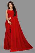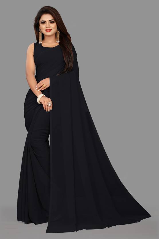 Jv Florona Solid/Plain Bollywood Chiffon Saree (Black)