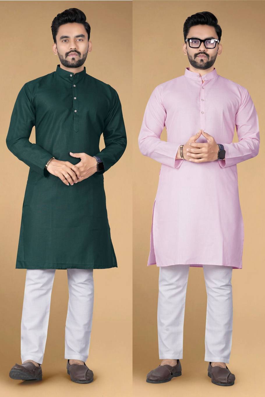 LYPLO Men Solid Straight Kurta (Green, Pink)