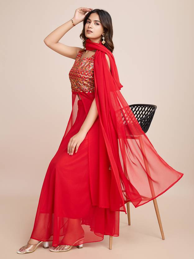 Women's Pakistani Kurta Salwar Suit Set Floral Embroidered Georgette Suits & Materials new designer havy embroidery work full sleeve stitched top and white pent