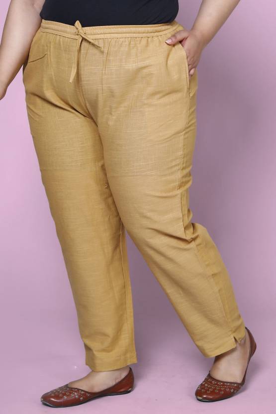 These women stylish solid pant from Prin fashio house are perfect pick for you.We offer a wide range of good quality attractive imported regular length casual plus size pant.these solid regular plus fit pant with allround elastic with drowstring are made with 100% pure cotton polyester fabric.Wear these solid mid rise pant with top and heels depending on your preference.kindly ensure the size chart before buying.