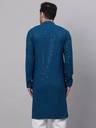 Princejan Men Chikan Embroidery Straight Kurta (Blue)