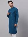 Men Chikan Embroidery Cotton Rayon Straight Kurta (Blue)