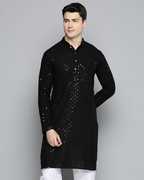 Heavy Sequence Chikankari Work Kurta For Men. This is a part of our Lakhnavi Kurta Collection. These are full sleeve Cotton Kurta. It has a soft feel to it.