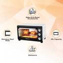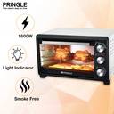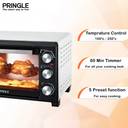 Bake delicious cakes, loaded pizzas, and the softest breads; roast chicken, grill vegetables and introduce a variety of new dishes in your kitchen conveniently Equipped with rotisserie function for cooking delicious tandoori dishes High-efficiency stainless steel heating elements help evenly toast, bake, brown and reheat to perfection Auto-shut off timer function with ready bell to prevent over-cooking and under-cooking Heat-resistant tempered glass window can withstand high temperature & is safe to use Removable crumb tray for easy cleaning Inside lamp for clear visibility throughout the cooking process Ideal convection mode for faster, uniform cooking & browning High temperature control range up to 250 degrees to cook any dish Open your kitchen to a whole new world of quick, easy and smart cooking like a Masterchef every day! Cooking capability: Baking, Grilling, Toasting; Heat-resistant tempered glass window Includes OTG, Chromed wire rack, Baking and grilling tray and tray handle Capacity: 28 litres, Dimensions: 50*35*31 cm Power Consumption: 220-230V~50Hz~1600W; Warranty: 2 years Material: Stainless Steel; Heating Type: Grill + Convection and Control Type: Rotating Knob; Heating element selector: top, bottom, sides pringle products are inspired by Italian Design and adhere to German Quality Standards. They are covered by Reliable pringle Warranty, T&C apply