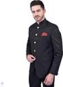 Roundfeet Men Solid Bandhgala Formal Blazer (Black)
