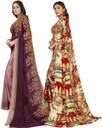 Printed Daily Wear Georgette Saree with Unstitched Blouse (Pack of 2, Multicolor, Purple, Beige)