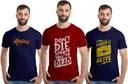 Printed Men Maroon, Dark Blue, Dark Blue T-Shirt (Pack of 3)