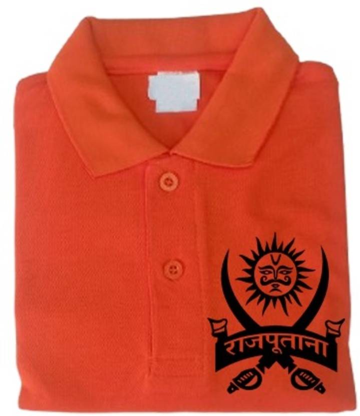 PRINTONLINE Solid Men Polo Neck Orange T-Shirt