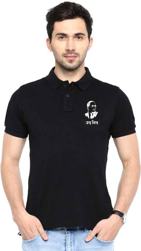 PRINTONLINE Printed Men Polo Neck Black T-Shirt