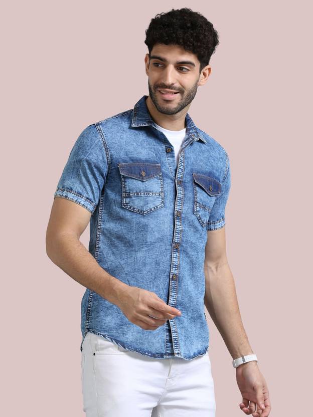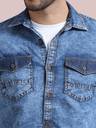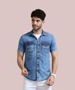 PRINTOUT Men Solid Casual Blue Shirt