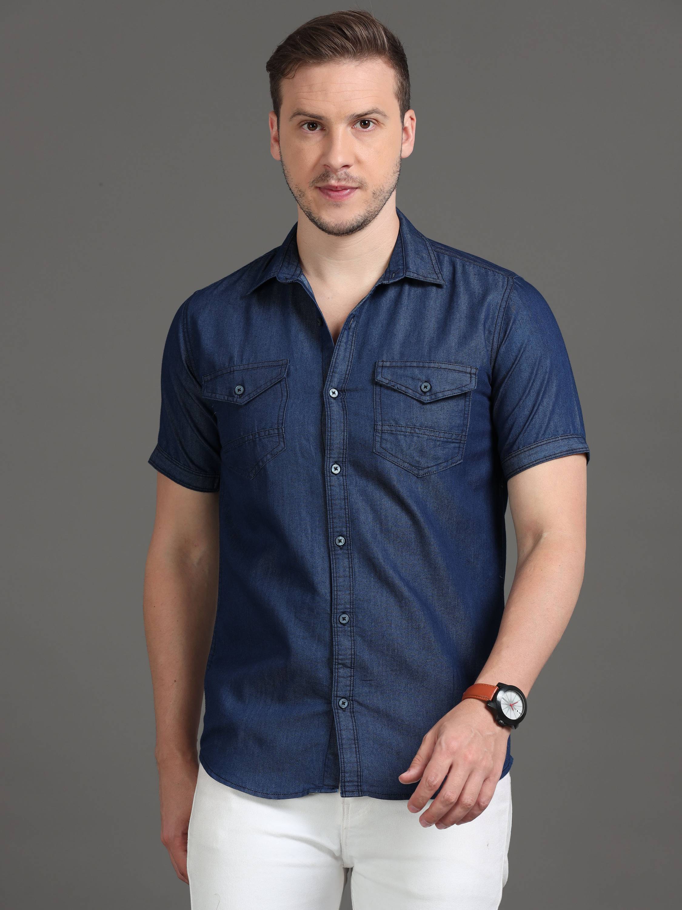 PRINTOUT Men Solid Casual Blue Shirt