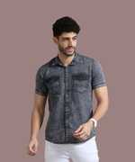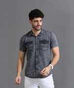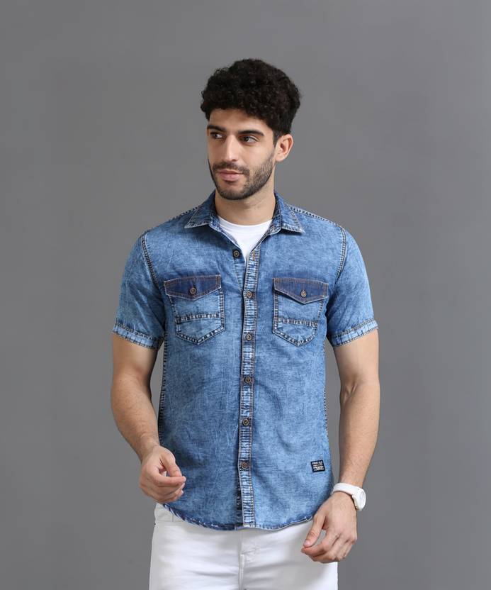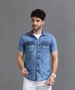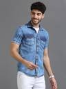 PRINTOUT Men Solid Casual Blue Shirt