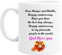 Printed Happy Wedding Anniversary & Happy Marriage Anniversary all relation Unique Quotes White Ceramic coffee mug for all married & Wedding Couple We want to be made to feel special gift every Wedding Couple, Perfect for coffee, tea, Milk and hot chocolate, this classic shape, White Ceramic mug. This Mug is made up of fine quality & you wants personalized mugs Here's a bright & minimalistic Mug, High Quality Printed Wedding & Marriage Ceramic Mug Which is Microwave & Dishware safe. Capacity: 325 ml
