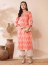 PRISCA Women Floral Print Straight Kurta (Orange)