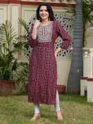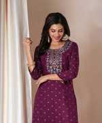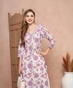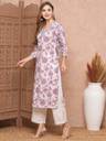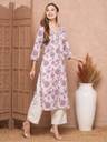 PRISCA Women Floral Print Straight Kurta (Purple)
