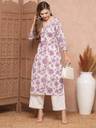 PRISCA Women Floral Print Straight Kurta (Purple)