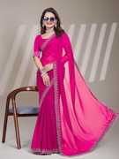 SPIRISA Embellished Bollywood Georgette Saree (Pink)
