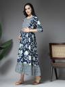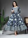 PRISTYLE Women Gown Blue, White Maxi/Full Length Dress