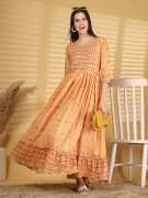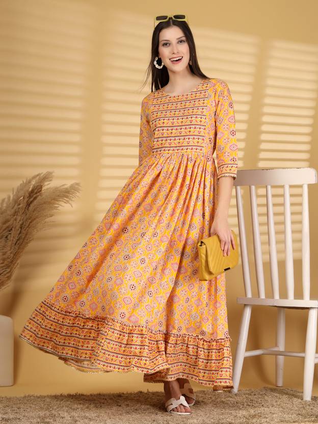 PRISTYLE Women Gown Yellow Maxi/Full Length Dress
