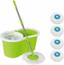 priya jain enterprise PRIYA JAIN ENTERPRISE Floor Cleaner MOP with Bucket Set Offer with Big Wheels for Best 360 Degree Easy Magic Cleaning, 4 Microfiber (Colour May Vary) Mop Set (Green)