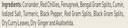 Coriander, red chillies, fenugreek, bengal gram splits, cumin, iodized salt, turmeric, black pepper, red gram splits, black gram splits, dry curry leaves, dry ginger and asafoetida