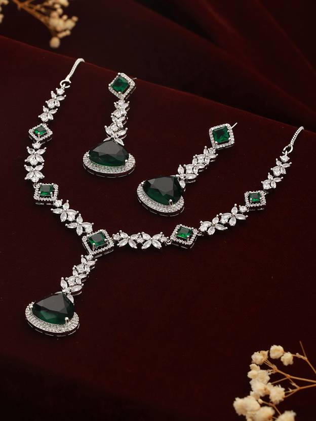 Priyaasi Brass Green Jewellery Set (Pack of 3)