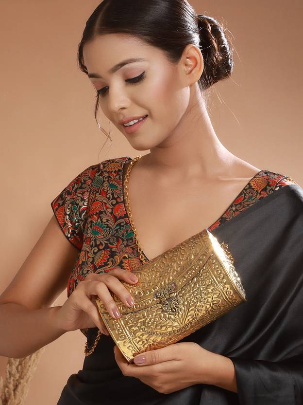 Gold Women Sling Bag Flora Textured Golden Metallic Clutch Sling Bag