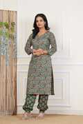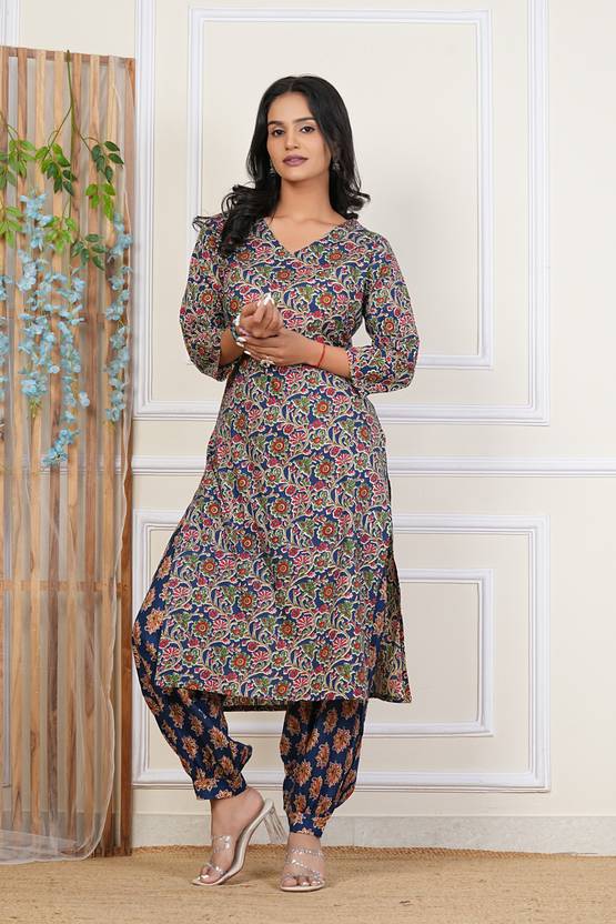Fabric: 100% Cotton Sleeve: 3/4th Sleeves Neck: V-Neck Style: Printed Straight Kurta with Patiala Pant Occasion: Casual, Festive & Office Wear Available in multiple color options