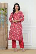 Upgrade your ethnic collection with this beautiful cotton printed kurta set designed for modern women. Crafted from premium breathable cotton fabric, it ensures all-day comfort while giving you a stylish traditional look. The kurta features vibrant all-over prints, a flattering V-neck, and 3/4th sleeves paired with a contrast printed Patiala pant. Perfect for office, casual outings, and festive occasions, this kurta set is a must-have wardrobe essential.
