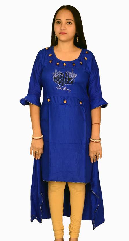 Women Embellished Viscose Rayon Straight Kurta (Blue)