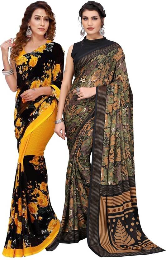 Priyashi Printed Daily Wear Georgette Saree (Pack of 2, Black)