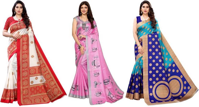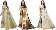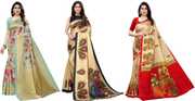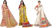 Priyashi Women's Trendy Pack of 3 Art Silk Sarees with Blouse Materials